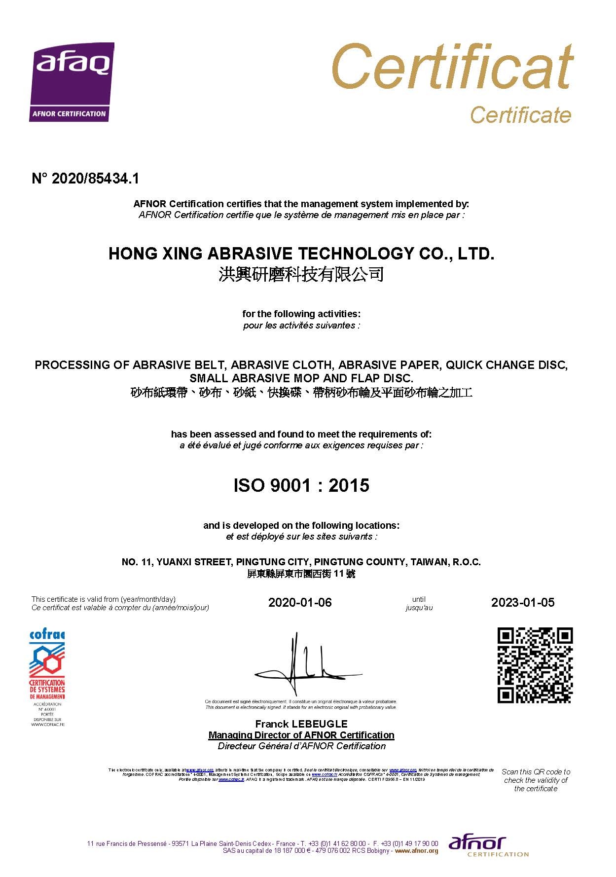 洪興已經深耕研磨材料領域超過五十年,我們的企業核心價值是不斷超越顧客期待。作為市場的領導者,洪興透過提供卓越的產品而收穫了極佳的聲譽。自始至終,我們遵循國際品質標準ISO 9001品質管理系統,穩定的為客戶提供頂尖產品。
