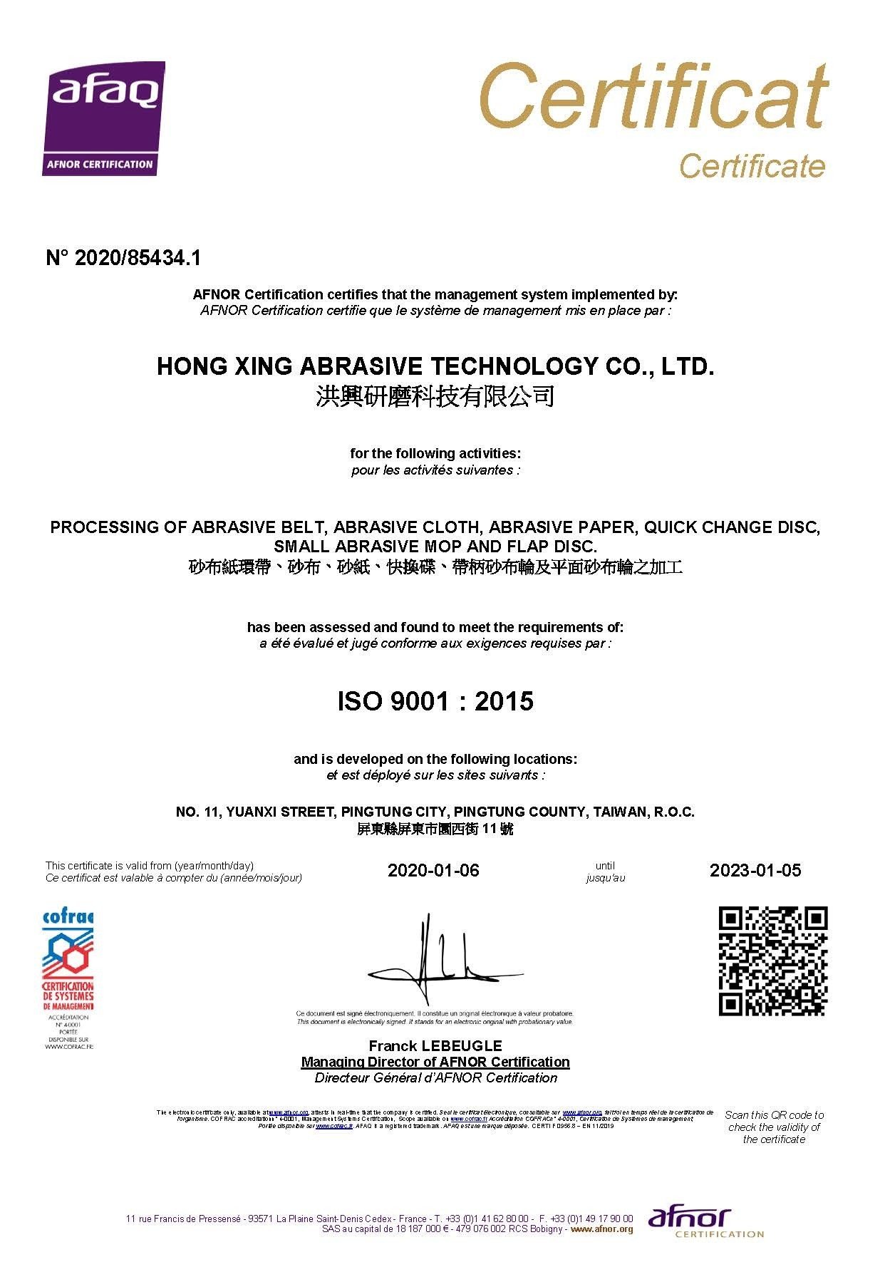 Always aiming to surpass customers’ expectations is our core business philosophy. Hong Xing has dedicated itself to abrasive field for over 50 years. As a leader of abrasive segment, Hong Xing has built its reputation by offering advanced products. We follow ISO 9001 international quality standard to establish our quality management system.